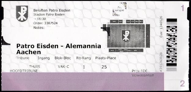 Das vorletzte Vorbereitungsspiel bestritt die Alemannia beim belgischen Zweitligisten Patro Eisden Maasmechelen. Diesen hatte man 1956 einmal mit 7:3 und 2016 sogar mit 8:0 geschlagen. Das Spiel sollte zuerst auf einem Nebenplatz stattfinden, wurde dann aber zu Ungunsten der Ground-Statistik ins Stadion verlegt. Hier gab es Fritten genauso wie nervige Bezahlkarten und noch nervigere schlechte und sehr laute Musik. Schlecht verlief auch das Spiel. Gleich in den ersten Minuten gerieten die Spieler beider Mannschaften aneinander. Nach einer Viertelstunde erlitt Mika Hanraths ohne gegnerische Einwirkung eine offenbar schwerere Muskelverletzung, Patro spielte den Angriff zu Ende und ging 1:0 in Führung. Mabanza erhöhte per Kopf auf 2:0. Nach der Pause nutzte Robberechts einen misslungenen Rückpass zum 3:0. Prychynenko sah für einen Kopfstoß gegen Bahn ebenso die Rote Karte wie sieben Minuten später der nachtretende Wriedt. Der nirgendwo namentlich erwähnte Spieler mit der Nr. 24 traf in der Schlussminute zum 4:0-Endstand und hinterließ einige sorgenvollen Mienen beim mitgereisten Anhang.