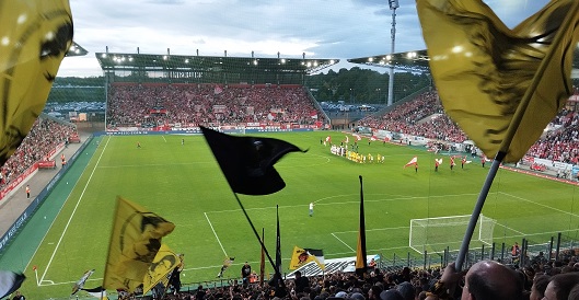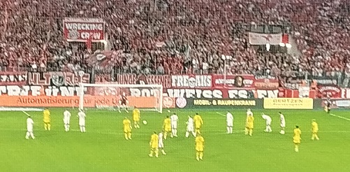 gefoult, und es gab Elfmeter. Gindorf verwandelte direkt vor der Essener Kurve