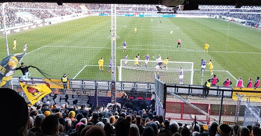 Liga, bietet aber gewohnt schlechte Sicht aus dem Gästeblock. Am Anfang