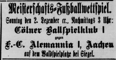 * Cöln verzichtete "wegen der Überlegenheit Alemannias"