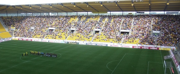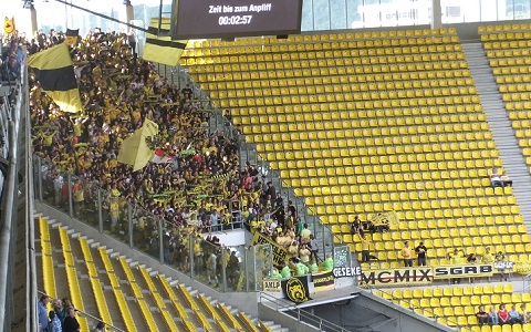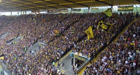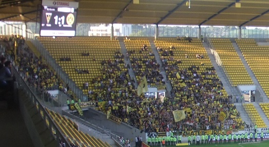 Dortmunder unter den 4500 Zuschauern, heute 1500 unter 19500, was die