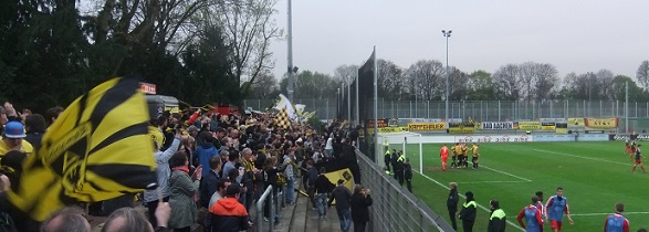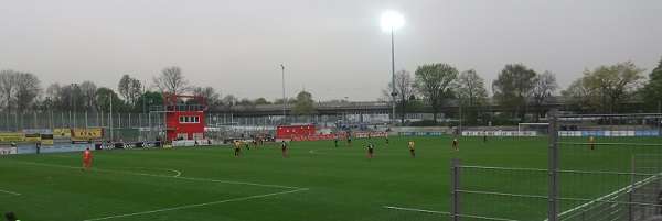 Dank der ZIS ging es am unschönen Freitagnachmittagstermin nach Leverkusen. 75 Minuten lang lief es dort alles andere als erfreulich - Scheiß-Ambiente, Scheiß-Spiel und Scheiß-Schiri. Nach zehn Minuten hätte es schon 1:0 stehen können, Bouhaddouz hatte freie Bahn, Löhe bekam noch den Finger dazwischen, und der Ball ging knapp links vorbei. Fünf Minuten später schoss Narey ganz knapp über das Tor, wenig später parierte Löhe einen Schuss von Bieler. Auch Mentizis verfehlte das Tor, bevor ein (vorsichtig formuliert) zweifelhafter Elfmeterpfiff für das 1:0 sorgte. Bouhaddouz hatte sich mit dem Rücken gegen Hoffmann gelehnt und fallen lassen. Zur Pause kam Drevina für den einzigen Stürmer Moslehe, dessen Position Marquet einnahm. Besser wurde es erstmal nicht, Co-Trainer Plaßhenrich musste noch wegen Reklamierens einer der vielen fragwürdigen Schiedsrichterentscheidungen auf die Tribüne. In der 64. Minute hatte nach Vorarbeit von Dowidat plötzlich den Ausgleich auf dem Fuß, den Torwart Lomb mit einem starken Reflex verhinderte. Narey hätte auf der anderen Seite aus spitzem Winkel das Spiel entscheiden können. Bei der Alemannia war mittlerweile Krasniqi im Spiel, der mit seiner Technik und Übersicht maßgeblich zur Wende beitrug. Zehn Minuten vor Schluss bediente er mit einem Flankenwechsel Neppe, dessen Hereingabe der ebenfalls eingewechselte Lünenbach per Flugkopfball zum 1:1 verwertete. Drei Minuten später legte Dowidat quer auf Lejan, dem wenige Meter vor dem Tor die sichere Führung über den Fuß sprang. Kurz darauf legte Krasniqi per Kopf für Dowidat auf, der alleine vor dem Tor links vorbei schoss. Am Ende wäre mehr drin gewesen, trotzdem geht das Unentschieden über 90 Minuten in Ordnung.