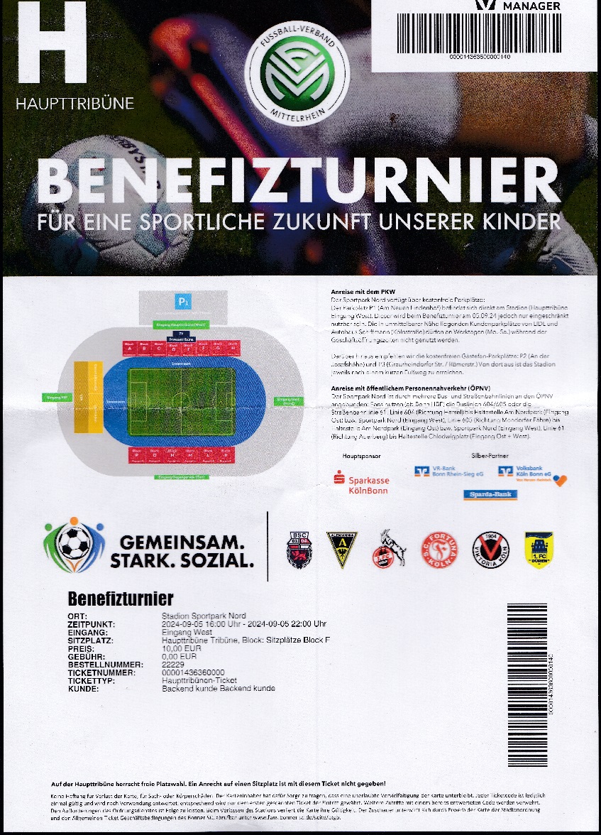 In der Länderspielpause setzte der FVM eine Benefizturnier zugunsten von Amateurvereinen der Region an, an dem bis auf Bayer Leverkusen die sechs sportlich z.Zt. führenden Vereine des Mittelrheins teilnahmen. Der Alemannia wurde hierbei ein Freilos im Viertelfinale zugelost, und im Halbfinale traf man auf Viktoria Köln, die vorher den FC Düren im Elfmeterschießen besiegt hatten. Während das 45-minütige Spiel zwischen Alemannia und Viktoria eher belanglos daher plätscherte, spielten auf dem Nebenplatz hinter der Gegengeraden Bonn und Düren um Platz 5, ohne dass es Stadionsprecher oder Anzeigetafel erwähnt hätten oder der Großteil der Bonner Zuschauer mitbekommen hätte. Nach der 2:0-Niederlage der Alemannia warteten wenige Alemannia-Fans noch eine Stunde auf das Ende des zweiten Halbfinals, um dann verloren am Nebenplatz zu stehen, auf dem Alemannia und Fortuna zum Spiel um Platz 3 nicht mehr antraten. Schön war das alles nicht, aber es ging ja irgendwo um den guten Zweck.
