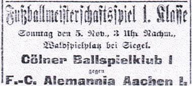 Schiedsrichter: R. Müller (Cölner FC 1899)