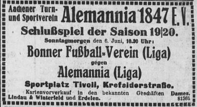 So, 06.06.20, 10:30 Uhr, Sportplatz Tivoli: