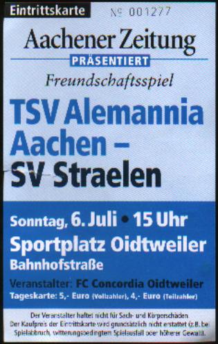 SV Straelen und schließlich der KFC Uerdingen - die Eintrittskarten