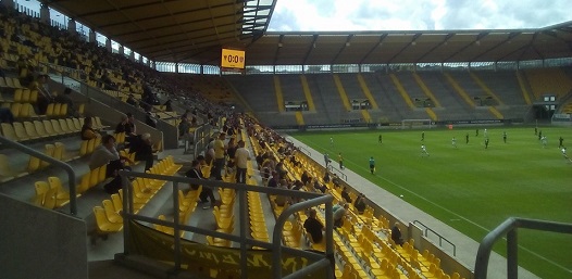 Zum ersten Mal 2021 fand ein Spiel im Postkasten mit Zuschauern statt; gut 1500 Geimpfte, Genesene und Getestete verteilten sich größtenteils auf der Osttribüne. In der ersten Halbzeit traf Wilton die Latte, und ein Tor von Dahmani wurde überraschend zurückgepfiffen. Zehn Minuten vor Schluss sorgte Uzelac für ein unerfreuliches Ende des Nachmittags, als er in der Rückwärtsbewegung des Ball verstolperte, den Elfmeter zum Tor des Tages verursachte und sich bei der Aktion auch noch verletzte. Somit gab es gegen den Südwest-Regionalligisten nach sieben Siegen im letzten Vorbereitsspiel die erste Niederlage.