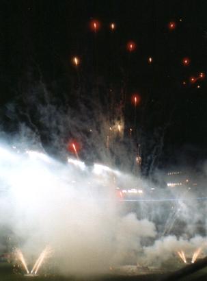 Zur Pause brannten die Veranstalter auf dem Spielfeld ein Feuerwerk ab, dass