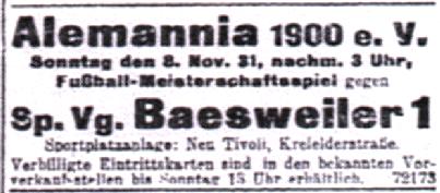 uns von der Geschäftsstelle der Alemannia mitgeteilt wird, waren gestern