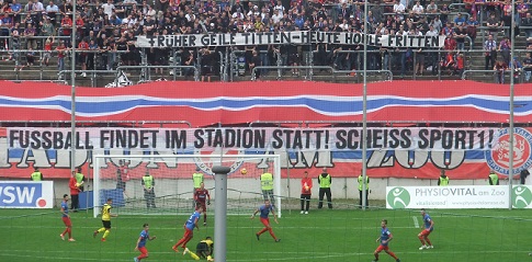 Teil des Spiels mit einem Stimmungsboykott und diversen Spruchbändern