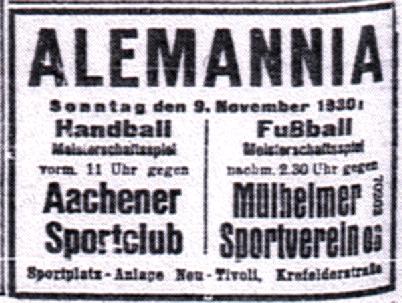 | Zolper - Gummer ?, H. Quadflieg ? - Scholl, Münzenberg, Franken - Behr, Wicke, Wiebecke, Salomon, Nießen | u.a. Odenfels (Tor) - Hönig, Niggemeyer |