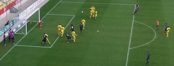 Pause war die Alemannia im Spiel. Wickl lenkte einen Schuss von Kühnel um