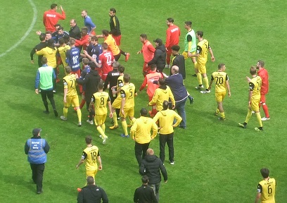 sprang. Bis auf eine Rudelbildung nach dem Spiel - inklusive Polizeieinsatz in