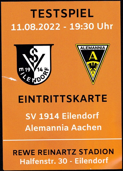Zum zweiten Testspiel in den zwei spielfreien Wochen trat die Alemannia beim in die Landesliga abgestiegenen SV Eilendorf an. Dank eines sehr defensiv umgesetzten 5-4-1 kassierten die Gastgeber auf dem Kunstrasen nur halb so viele Tore wie im Vorjahr. Inklusive der A-Jugendlichen Tholens, Eyrice und Ivic kamen bei der Alemannia 20 Spieler zum Einsatz. Der auffälligste davon war Felix Heim, der an allen vier Toren beteiligt war. Beim ersten flankte Schmitt von links auf den Kopf von Imbongo. Beim zweiten eroberte Schlösser rechts den Ball und legte quer auf Heim. Beim dritten zog Heim von rechts nach innen und traf ins lange Eck, und beim vierten spielte Heim steil auf Ivic. Leider gab es keinen Kuchen.