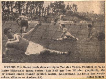 den Ball zu, ohne daß auch nur ein Herner ihn erreicht hätte.