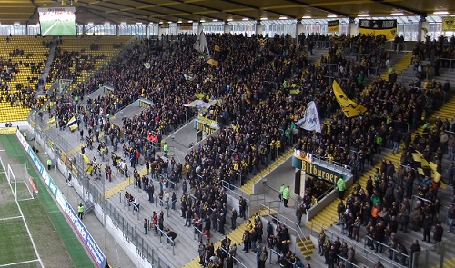 Angst vor seinen Fans verloren und rannte als erster jubelnd in die Kurve.