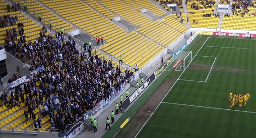 schon vor dem Spiel den Sitzplatz gestürmt hatten und bedrohlich an der
