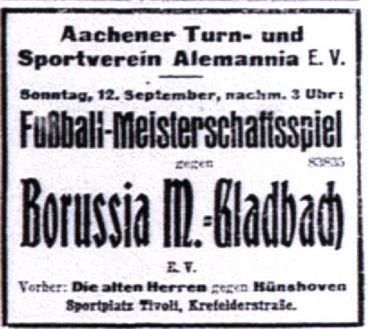 ALEMANNIA - Bor. Mönchengladbach 1:1 (1:1) abgebr.