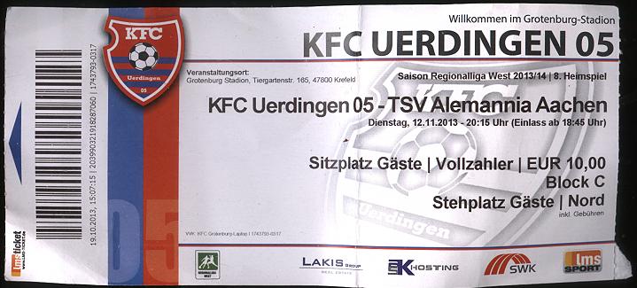 verlegte Partie zwischen dem KFC Uerdingen und der Alemannia. Beide