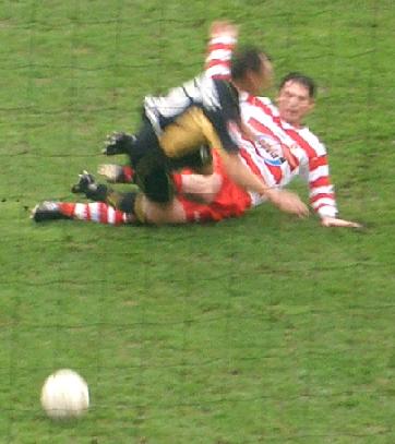 vor seinem Bewacher Stefan Blank, und es stand 0:1. Die Alemannia war nach