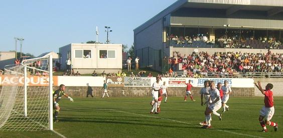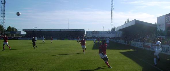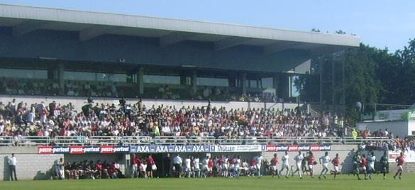 um überdachte Hintertortribünen erweiterte) Stadion fast bis auf