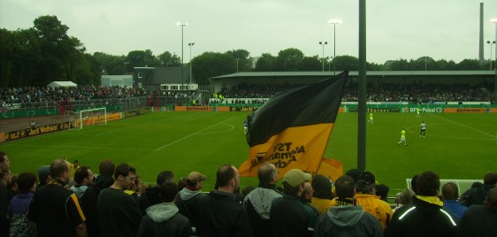 * verwunderte Blicke ob der neongrünen Pokaltrikots, die wahlweise für Trainingsleibchen oder Ordnerwesten gehalten wurden