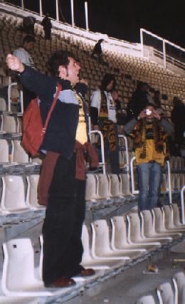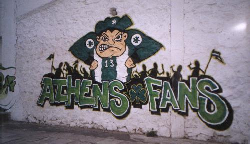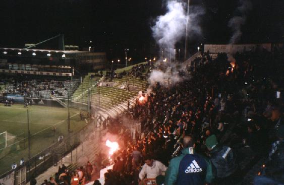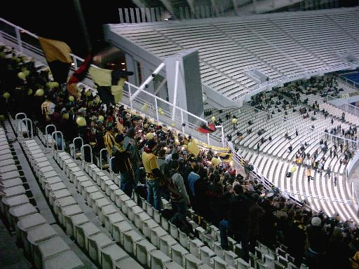 Oberrang hinter dem einen Tor untergebracht, AEK stand im Unterrang hinter