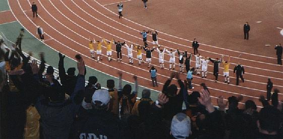 entgegenkamen. Einen eigenen Fanblock machten die Alemannia-Anhänger