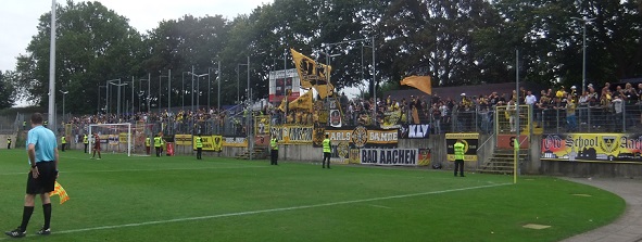 Eins der unspektakuläreren Spiele der letzten Zeit bestritt die Alemannia am neunten Spieltag bei Fortuna Düsseldorf II. Die ersten 55 Minuten des Spiels verliefen ohne jeden Höhepunkt. Die Alemannia hatte zwar mehr Ballbesitz, kam aber nicht gefährlich in Tornähe. In der 56. Minute hatte Bonga mit einem Kopfball nach Ecke von Akca schließlich die erste Torchance des Spiels, die Nagel zunichte machte. Auf der Gegenseite ging Dowidat an Torwart vom Steeg vorbei, wurde aber zu weit in Richtung Torauslinie gedrängt. Einige Minuten später ging die Alemannia in Führung. Ernst legte von der rechten Seite in die Mitte, Gödde ließ durch, und der sieben Minuten zuvor eingewechselte Kühnel traf zum 0:1. Die Fortuna wurde nun aktiver. Fünf Minuten nach dem Tor musste sich Nagel bei einem Kopfball von Rüzgar lang machen. Fünf Minuten vor Schluss gab die Alemannia den Sieg dann doch noch aus der Hand. Ein Freistoß von Lippold war lange in der Luft, trotzdem konnte Weber mehr oder weniger freistehend zum 1:1-Endstand einköpfen.