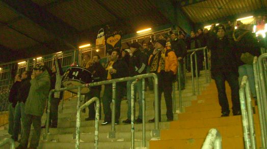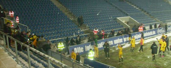 * bei Anpfiff nur gut 200, am Ende knapp 400 Alemannia-Fans im Stadion