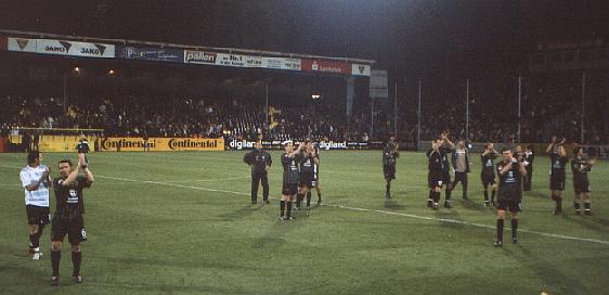 Die Duisburger feierten den Punktgewinn, der sie dem Aufstieg einen weiteren