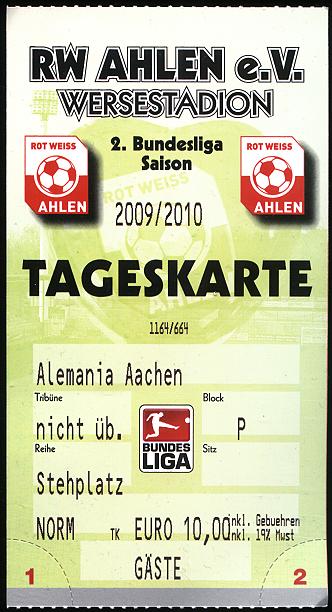 Nach monatelangem Frieren konnten wir endlich am viertletzten Spieltag beim Tabellenletzten Ahlen ein 90-minütiges Sonnenbad genießen. Ärgerlich war neben Anstoßzeit und Getränkepreisen höchstens die erneut unterirdische fußballerische Darbietung. Sascha Kirschstein rannte nach 35 Minuten den von Alper Uludag angespielten Benjamin Auer über den Haufen und ermöglichte Aimen Demai das Tor des Tages. In der zweiten Halbzeit spielten nur noch die Gastgeber, trafen das Tor aber nicht mehr. Die Begeisterung im Gästeblock kannte keine Grenzen: Links zündete sich irgendjemand einen Joint an, weiter rechts schlief jemand seinen Rausch aus, zwischendrin las jemand konzentriert die Blöd am Sonntag, und ganz rechts hüpften die Ultras enthuasiastisch auf und ab. Offiziell 3500 Zuschauer langweilten sich im beschaulichen Städtchen an der Werse, von denen gut die Hälfte wirklich anwesend waren. Ahlen ist damit offiziell abgestiegen und die Alemannia zumindest sportlich so gut wie gerettet. Die nächste Entscheidung fällt am Mittwoch in Rathaus, und wenn jeder, der bei der letzten Kommunalwahl mit Alemannia-Schal vom Plakat gegrinst hat, entsprechend abstimmt, wird auch das ein glimpfliches Ende finden.