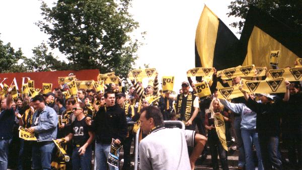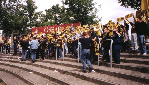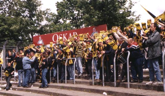 Mannschaft im Wechsel mit der Gegengerade lautstark unterstützten. Von