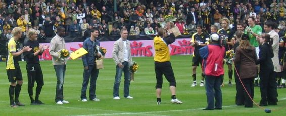 John Jairo Mosquera, Todor Kolev und Marius Ebbers mit Blumen verabschiedet.