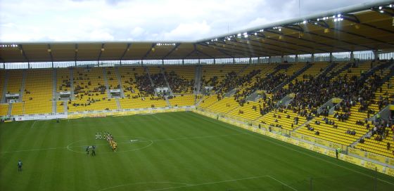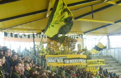 weiter spielt die Alemannia als Tabellenletzter vor jeder Menge gelben Sitzen