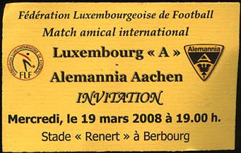Die Alemannia bestritt am Mittwoch ein einseitig kurzfristig bekanntgegebenes Testspiel in Berbourg gegen die luxemburgische A-Nationalmannschaft. An selber Stelle hatte die Alemannia vor drei Jahren im Sommer 7:0 gegen Grevenmacher gewonnen, dieses Mal war es deutlich kälter und ungemütlicher. Insgesamt 22 Spieler kamen bei der Alemannia zum Einsatz, darunter der A-Jugendliche Lewis Holtby. Es fehlten der verletzte Hrvoje Vukovic und Reiner Plaßhenrich, der geschont wurde und auf dem Nebenplatz seine Runden drehte. Luxemburg hatte zwar über 90 Minuten keine Torchancen, verkaufte dafür aber viele Würstchen für 3 Euro. Bei der Alemannia fiel John Jairo Mosquera zweimal reklamierend im Strafraum hin und schoss nach einer Viertelstunde links am Tor vorbei. Nach einer halben Stunde stand Todor Kolev nach Ablage von Matthias Lehmann frei vor dem Torwart und machte nichts draus, wenig später köpfte er nach Flanke von Daniel Brinkmann rechts vorbei. Nach der Pause köpfte Nico Herzig nach Flanke von Szilárd Nemeth rechts vorbei, bevor Marius Ebbers ebenfalls per Kopf nach Flanke von Mirko Casper das Tor des Tages erzielte. Zweimal Emmanuel Krontiris und Nico Herzig verpassten danach weitere Treffer.