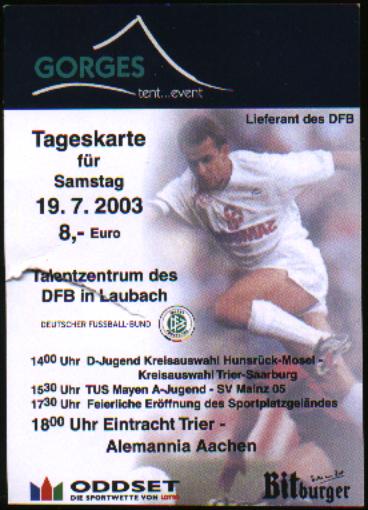 Alemannia auf Eintracht Trier. 8 Euro (auf Deutsch: 16 Mark) kostete eine