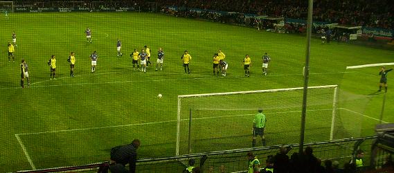 Führung. Cristian Fiel legte einen Freistoß von der linken Seite