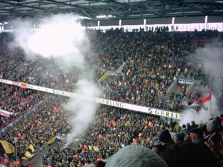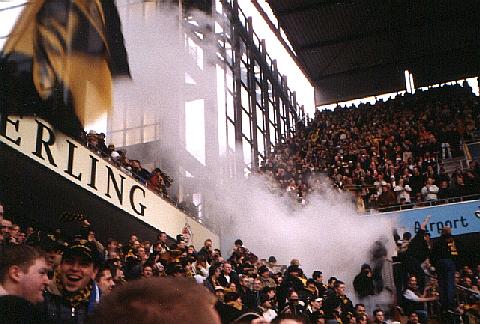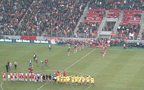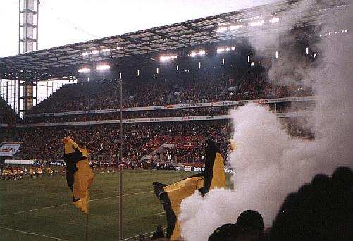 UEFA-Cup-Stimmung herrscht, hingen merkwürdige Fahnen wie "Wunde