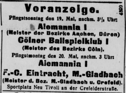 Aachen, da am selben Tage die 1. Mannschaft gegen Turnerbund Essen-Borbeck in