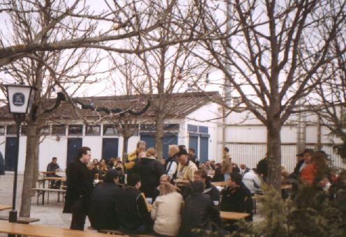 Biergarten war fest in schwarz-gelber Hand, bei andauerndem Nieselregen