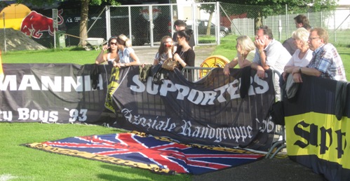 * das einzige Spruchband lassen die Ordner hängen, da es aus Aachen und nicht von Austria ist