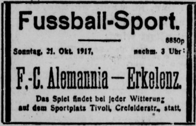 So, 21.10.17, 15 Uhr, Sportplatz Tivoli: