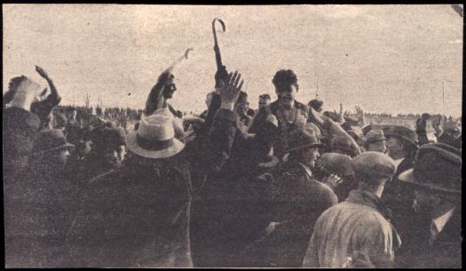 Schultern der Begeisterten werden die Spieler zur Kabine getragen. [...]