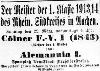 So, 22.03.14, 16 Uhr, Sportplatz Tivoli: