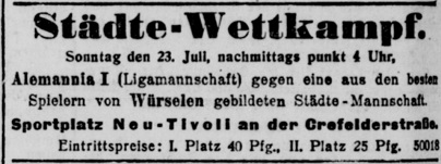 So, 23.07.16, 16 Uhr, Sportplatz Tivoli: