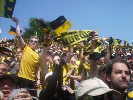 "Tschö Tivoli"-Banner mitgebracht. Schließlich bot auch