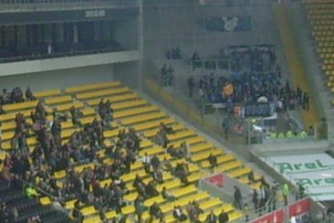 * die Folgen: erneuter Zuschauerminusrekord im neuen Tivoli und ein staubedingt verwaister Gästeblock