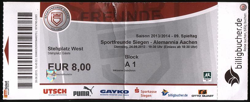 Nach vier Niederlagen in Folge fuhr die Alemannia als Außenseiter nach Siegen. Nach fünf Minuten war bereits klar, dass der Abend kein gutes Ende nehmen würde. Weber köpfte einen Freistoß aus dem Halbfeld zum 1:0 ins Netz, während die Abwehr auf Abseits spielte und Löhe am Ball vorbei flog. Kurz darauf verpasste Möllering das 2:0. Auftreten und Körpersprache unserer Mannschaft machten wenig Hoffnung auf eine Wende. Beim zweiten Tor griff unsere Abwehr nicht entschieden genug ein, der Ball prallte zu Bouadoud, der ihn über Löhe zum zweiten Treffer ins Netz hob. Die Alemannia kam mit erkennbarem Bemühen aus der Kabine, geriet aber nach einer Tätlichkeit von Schumacher in Unterzahl. Maouel erzielte den Endstand. Zu diesem Zeitpunkt waren das Bier und die Würstchenverkäuferinnen im Gästeblock bereits interessanter als der Ausgang des in allen Belangen trostlosen Spiels. Es folgten die sich mittlerweiel jährlichen wiederholenden Diskussionen zwischen Fans und Spielern und Trainern am Zaun.