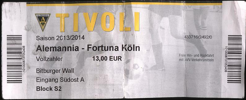 Vire Tage nachdem die Gläubiger dem Insolvenzplan zustimmten sollte gegen Tabellenführer Fortuna Cöln vor 6700 Zuschauern die Aufbruchstimmung mitgenommen werden. Die hielt gut drei Minuten. Unsere Abwehr verschlief eine Freistoßausführung von Streit, Kessel traf den linken Pfosten, und Kraus staubte zum 0:1 ab. Mitte des ersten Durchgangs bediente der Ex-Aachener Andersen den Ex-Aachener Streit, der nicht unhaltbar zum 0:2 traf. Damit war die Begegnung früh entschieden, kurz nach dem Wechsel schloss wieder Streit einen Konter zum 0:3 ab. Die Alemannia betrieb daraufhin Schadensbegrenzung, riskierte nichts mehr, verhinderte ein Debakel, aber trug wenig zur Erheiterung der Zuschauer bei. Nur Moslehe traf in der Schlussminute nach einem Solo zum 1:3-Endstand. Es war bereits die sechste Heimniederlage im zehnten Spiel und in der Deutlichkeit ernüchternd.